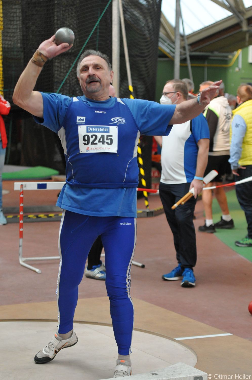 Ein weiterer Goldsammler war Werner Wetzel von der TSG Germania Dossenheim. Nicht nur alle drei Kurzstrecken, sondern auch der Hürdenlauf gingen auf sein ansehnliches Konto. Ungefährdet waren auch die drei Auftritte von Hartmut Krämer von der DJK Käfertal Mannheim in der M80. Seine 8,86 Sekunden, 31,58 Sekunden sowie 84,34 Sekunden verdienen allerhöchsten Respekt. In gewohnt souveräner Weise kassierte Roland Heiler von der LAG Obere Murg den Spitzenplatz im Kugelstoßen mit 11,78 Meter. In der M85 schaffte Bernhard Bolz vom TV Liedolsheim den besten Stoß über die begehrte 10 Meter Marke und kam damit knapp an seinen badischen Rekord aus dem Freien aus dem letzten Jahr heran.