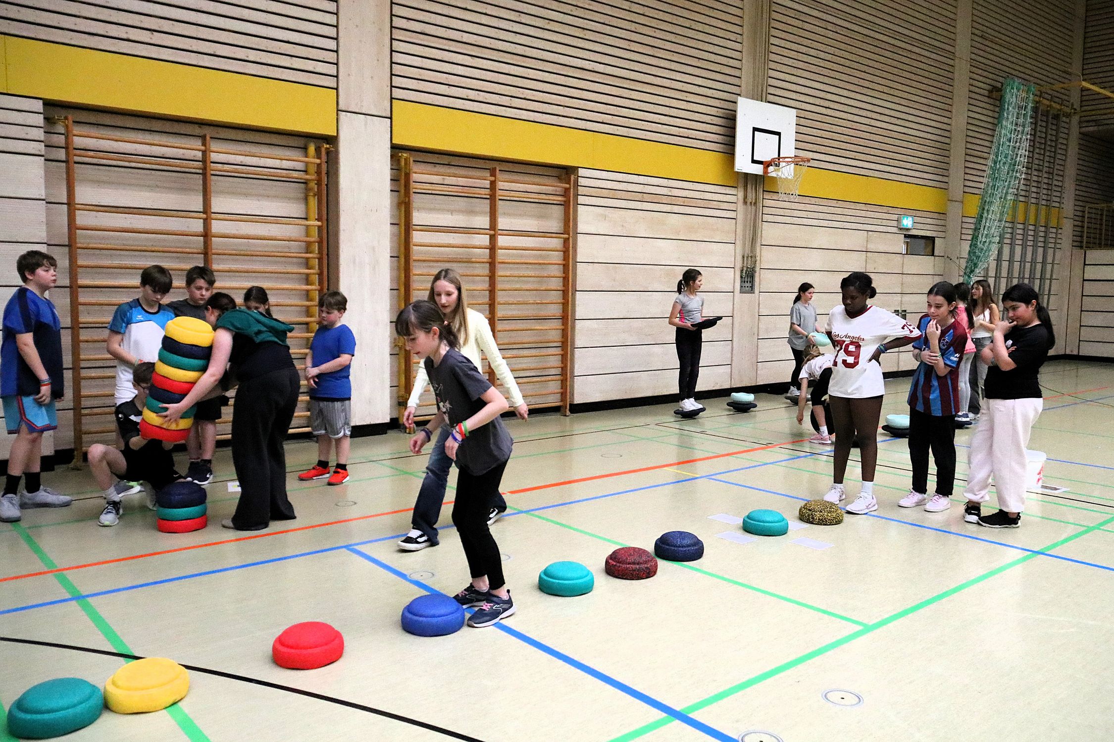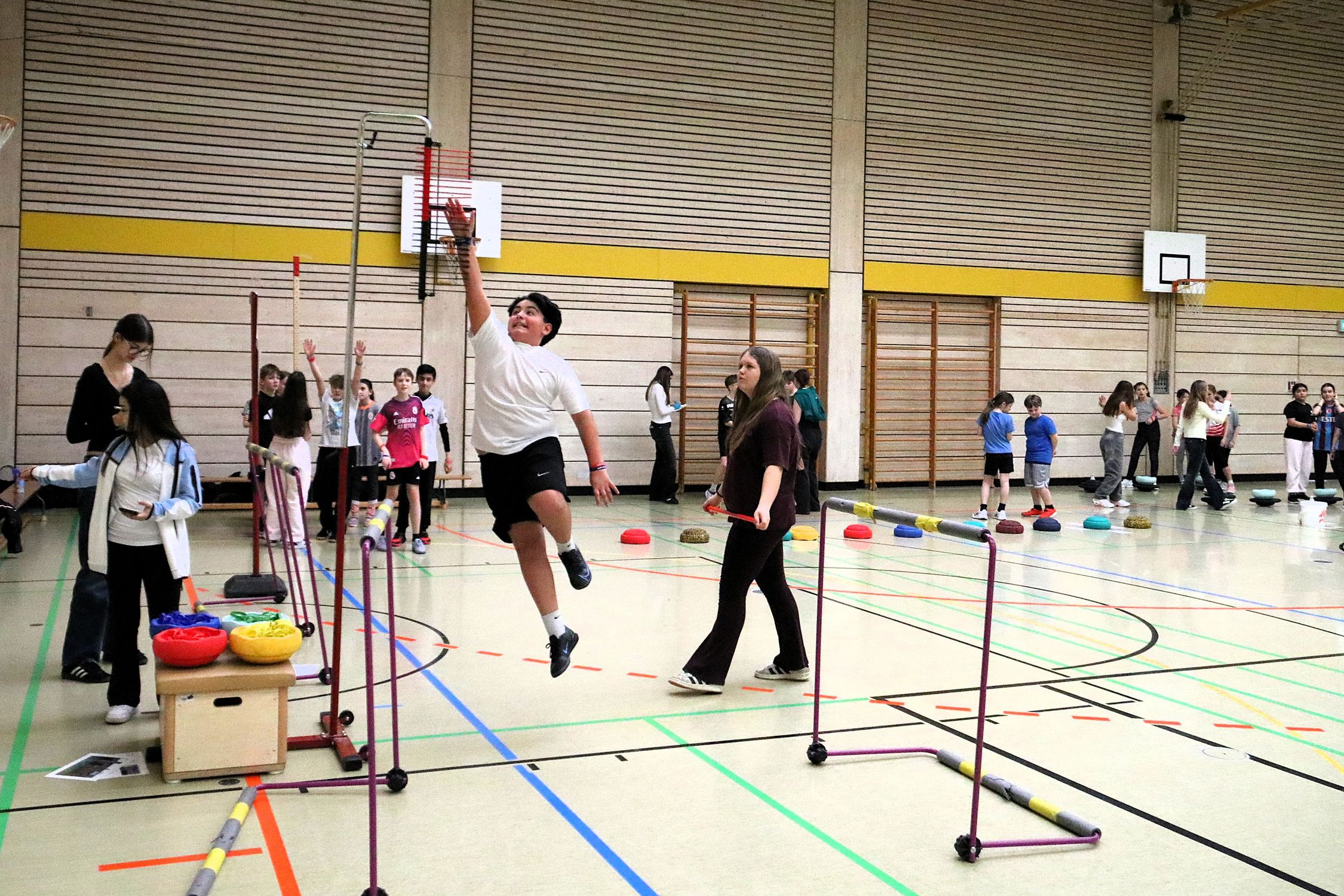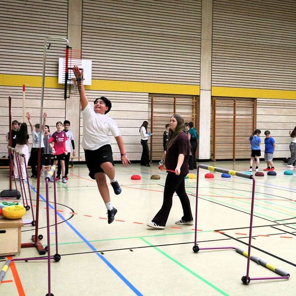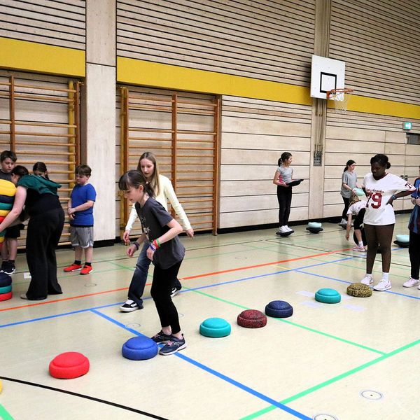 An der Inge-Aicher-Scholl Realschule Pfuhl wurde das Team herzlich von Sportlehrerin Janine Dehghani in Empfang genommen. Gemeinsam mit engagierten Schüler:innen aus einer höheren Klassenstufe war der Aufbau schnell abgeschlossen und die erste Gruppe der fünften Klassen konnten an die Stationen.