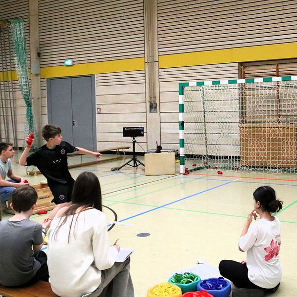 Insgesamt durchliefen in zwei Durchgängen 131 Schüler:innen die sechs Stationen, wobei sie von den Stations-Helfenden lautstark angefeuert wurden. Besonders beliebt war die Station „Speed-Toss“, bei der es ausnahmsweise einmal nicht um die größte Weite der Würfe geht, sondern um die höchste Wurfgeschwindigkeit.